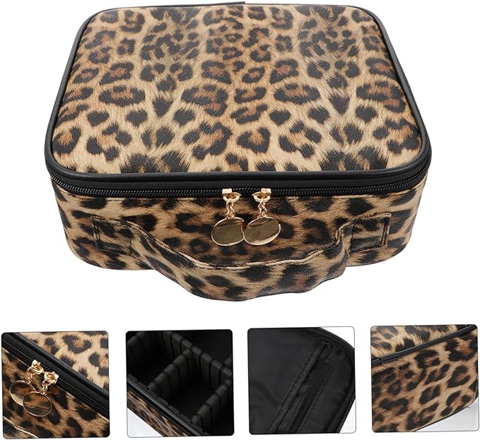 Travel Makeup Train Case Makeup Cosmetic Case Organizer Portable Artist Storage Bag with Adjustable Dividers for Cosmetics Makeup Brushes Toiletry Jewelry Digital Accessories (Leopard)