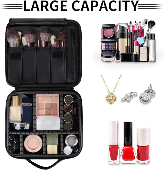 - MULTIFUNCTIONAL MAKEUP BAG: This Makeup Bag not only can storage your cosmetic essentials, but also Jewelry, Electronic Accessories, Camera, Essential oil, Toiletries, Shaving Kit, Valuable objects and so on.